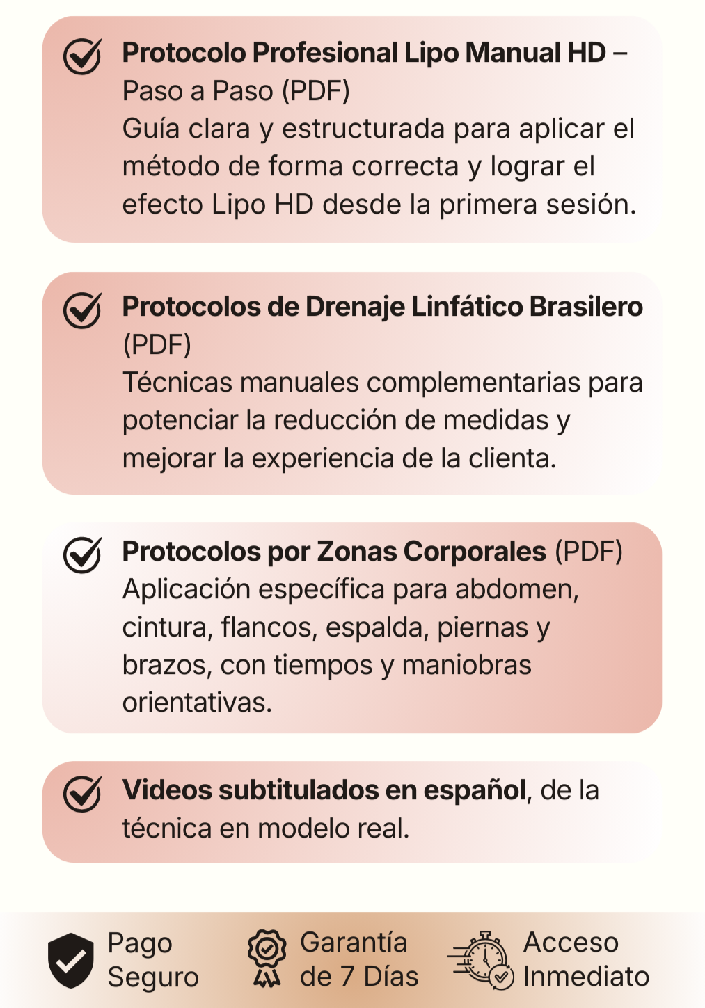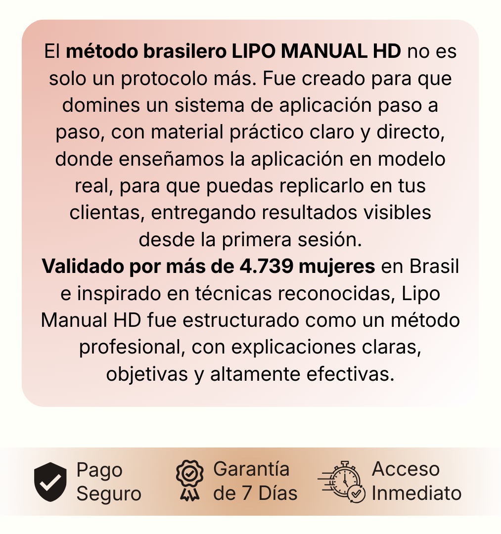 Vas a recibir acceso a un pack completo de protocolos de Lipo Manual HD, que incluye: